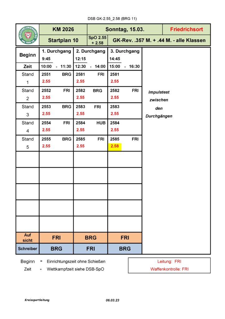 Leider müssen wir Änderungen an der Kreismeisterschaft 2.55 – 25m Revolver .357Mag und 2.58 – 25m Revolver .44Mag durchführen.