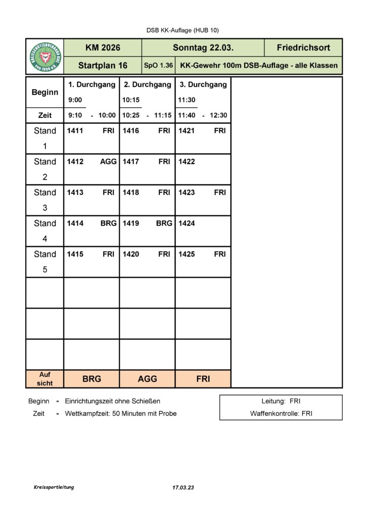 Kreismeisterschaft – Startplan 14 – 1.11 DSB LG-Auflage