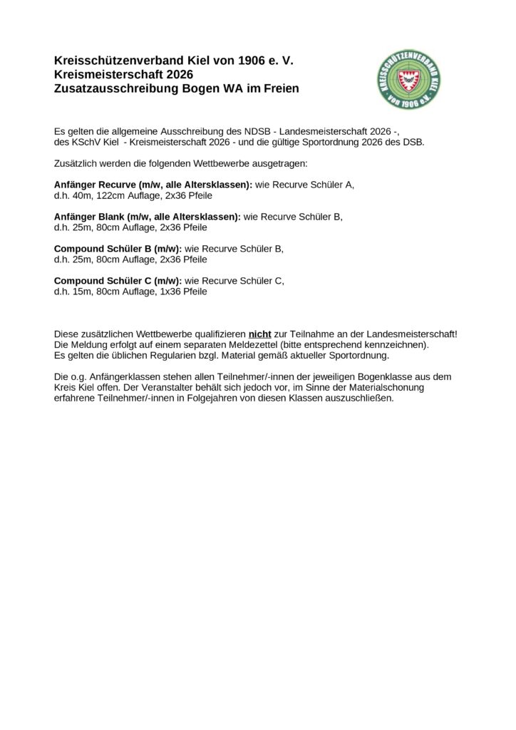 Kreismeisterschaft 2026 – WA Bogen im Freien – Zusatzausschreibung