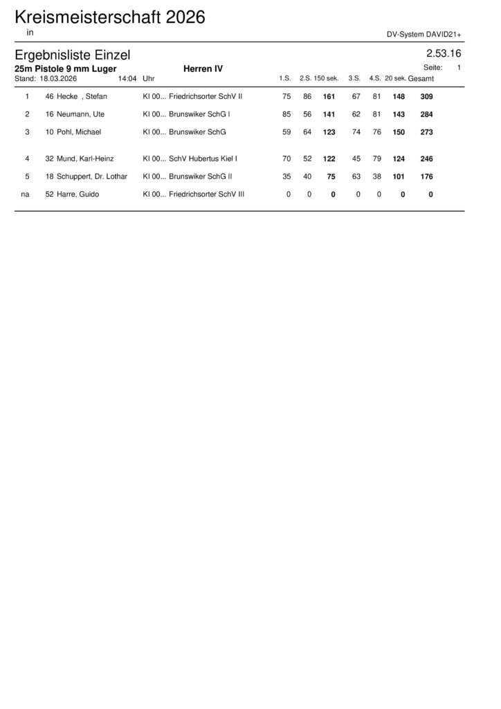Ergebnisliste Mannschaft Kreismeisterschaft 2026 – 25m Pistole 9mm Luger – 2.53