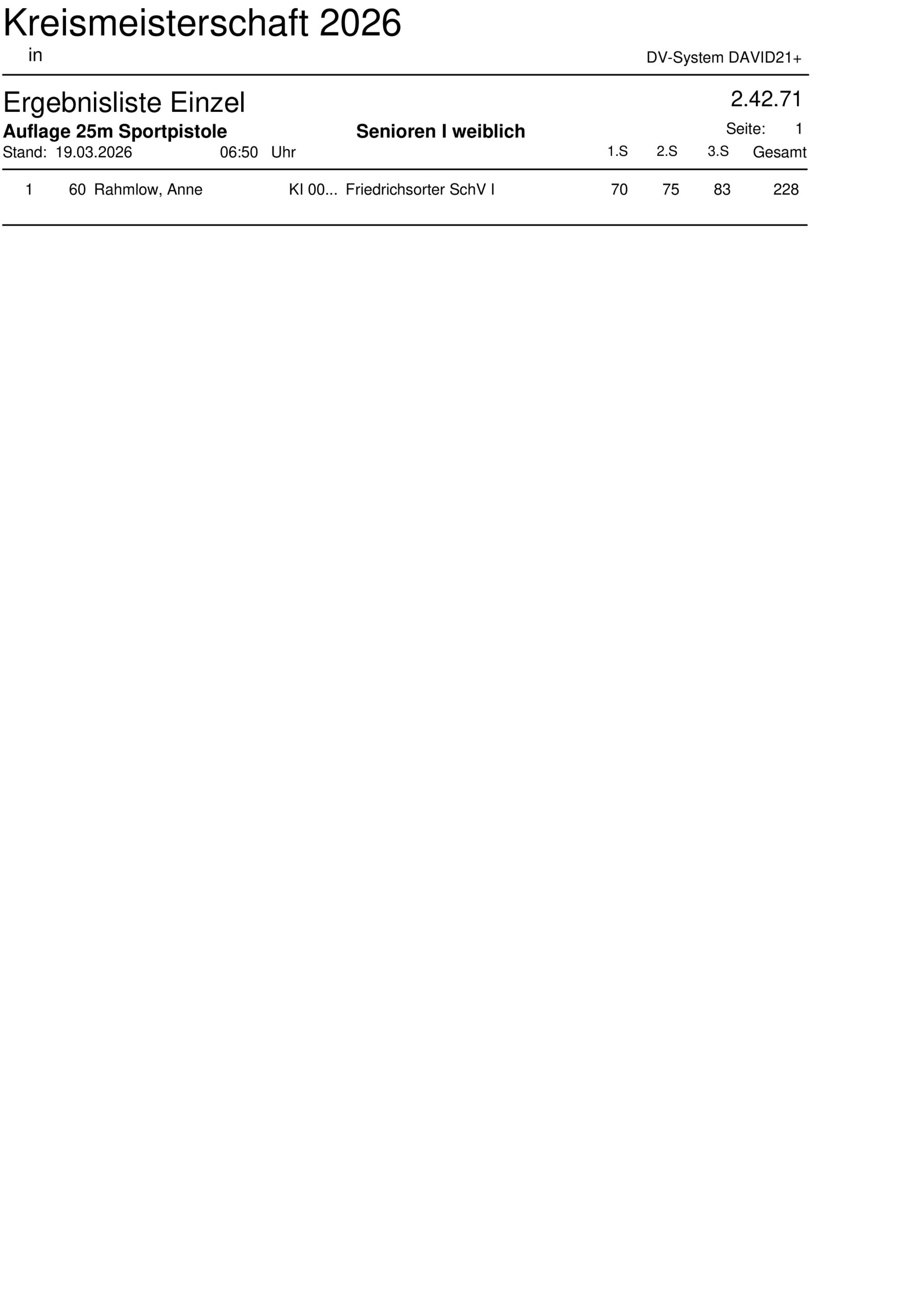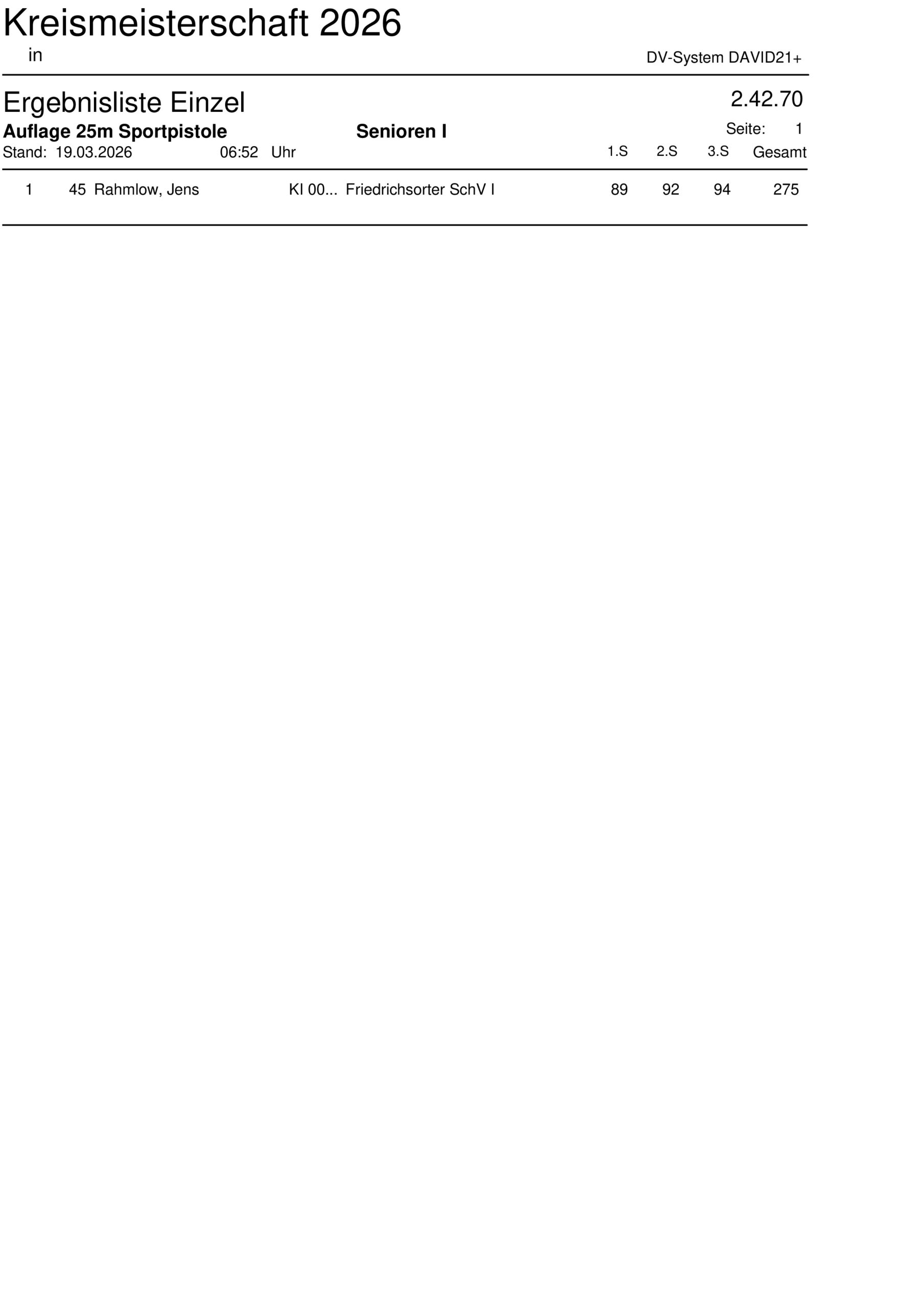 Ergebnisliste Mannschaft Kreismeisterschaft 2026 – 25m Sportpistole Auflage – 2.42