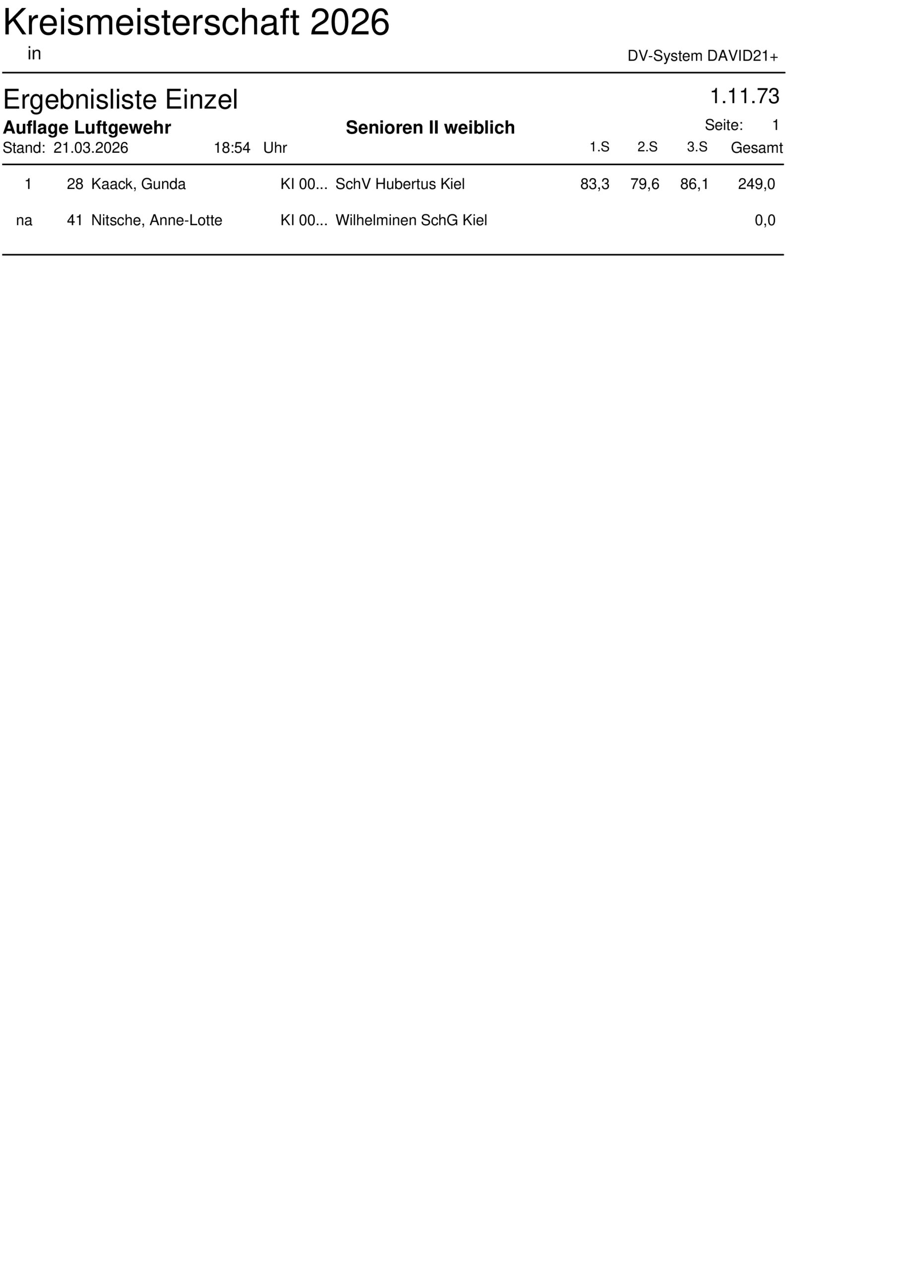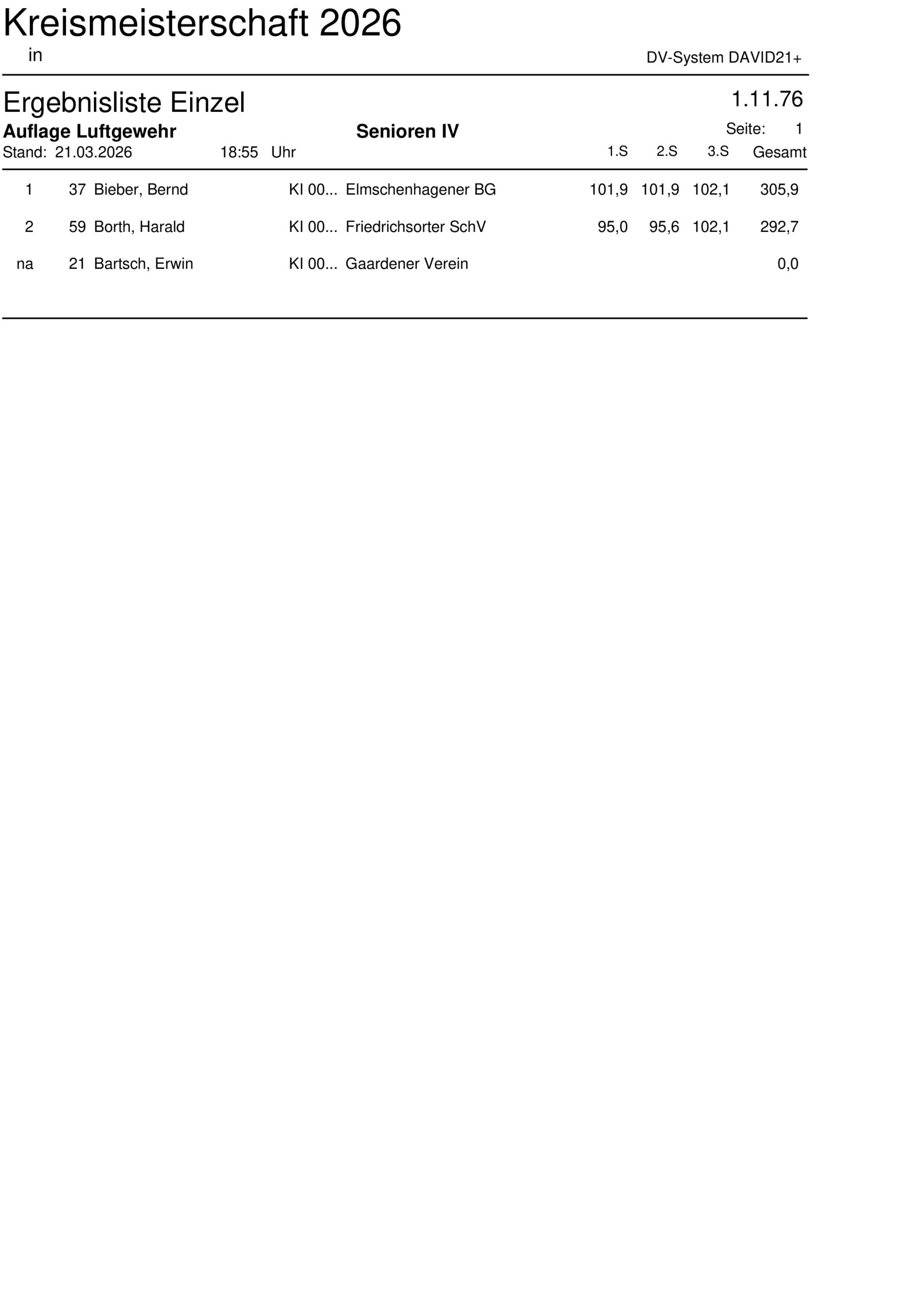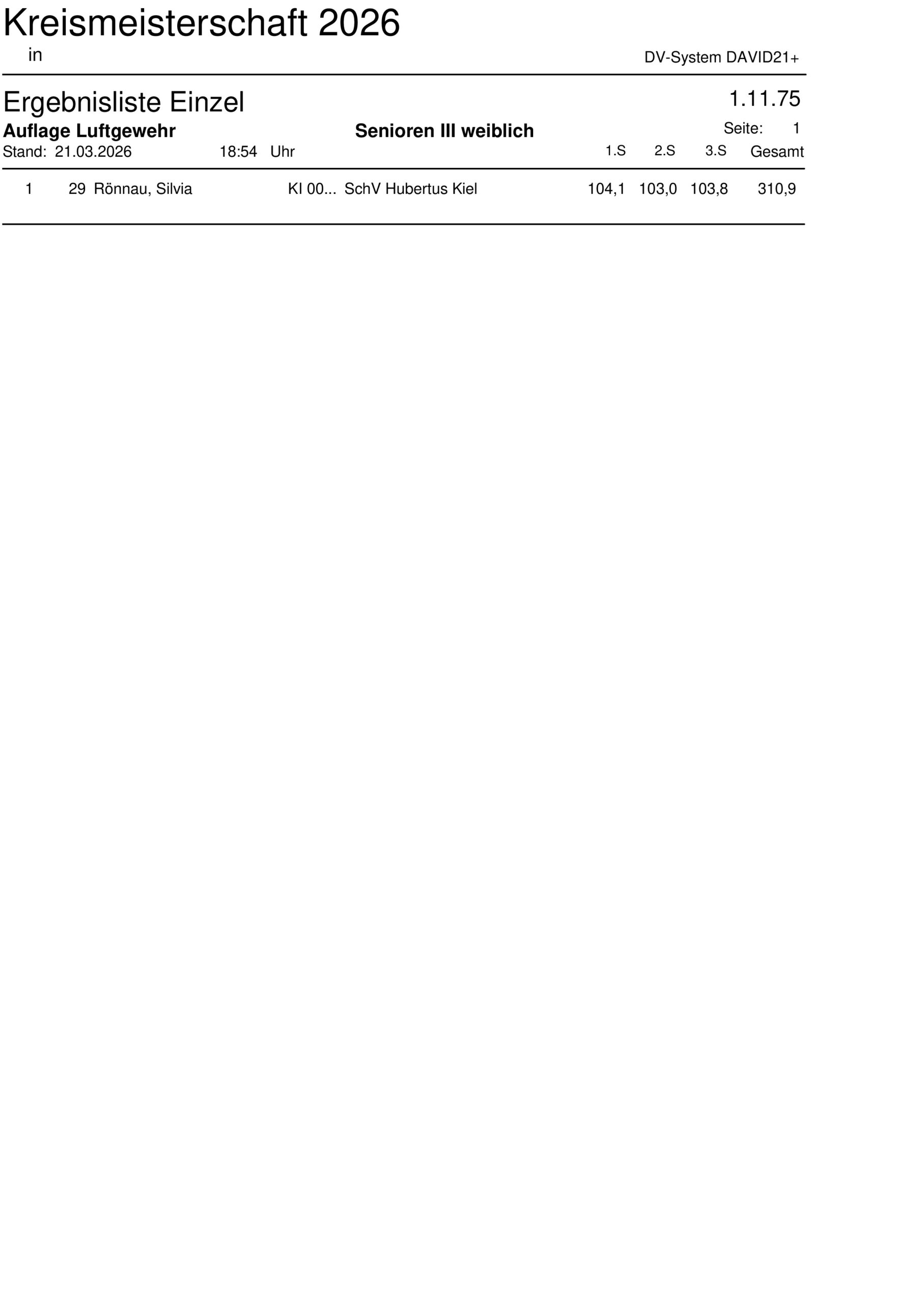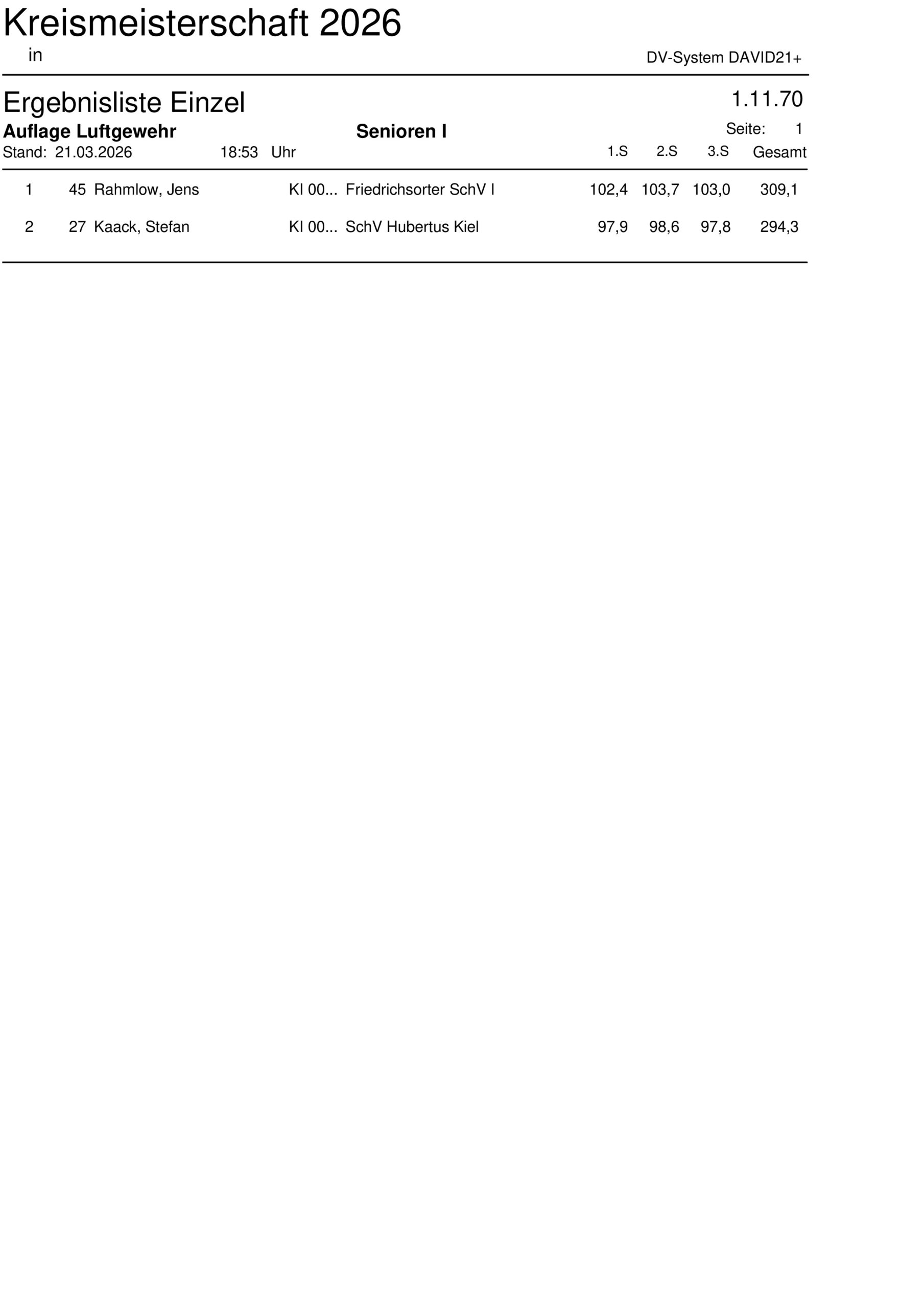 Ergebnisliste Mannschaft Kreismeisterschaft 2026 – 10m Luftgewehr Auflage – 1.11