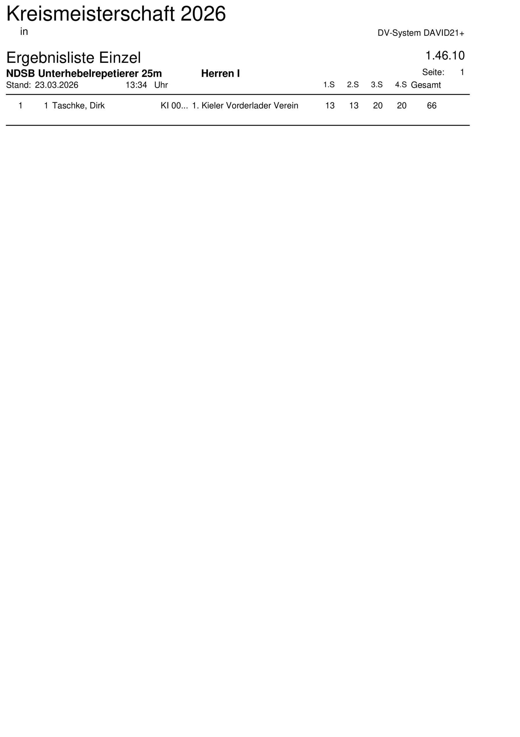 Ergebnisliste Mannschaft Kreismeisterschaft 2026 – NDSB Unterhebelrepetierer 50m – 1.49