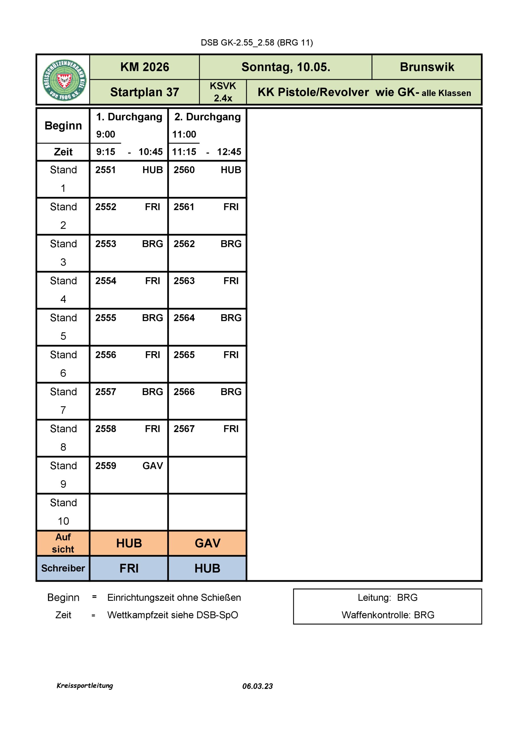 Kreismeisterschaft – Startplan 37 – KSVK 2.4x – Kleinkaliber Pistole/Revolver wie Großkaliber 25m